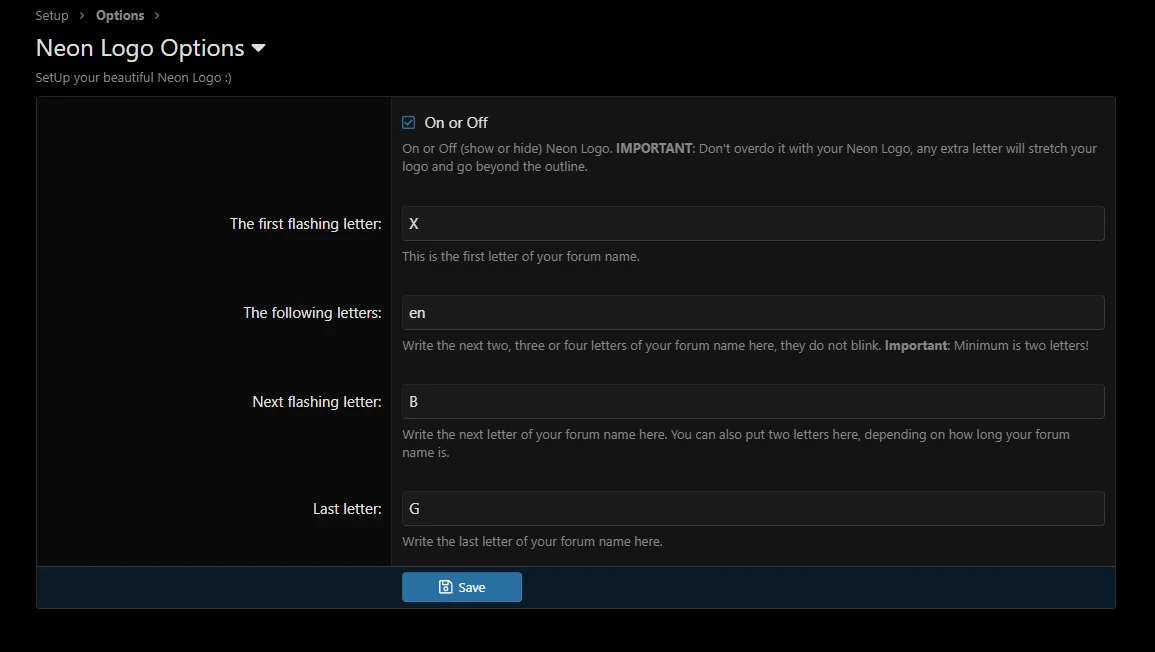 无名 Administrator 管理成员 站长 Lv0 Lv1 Lv2 11消息得分 注册 2023-10-25 消息 2,611 反馈评分 40 2025-10-03 #1 无名 提交新资源: XF2 Style [XenBg] Neon Logo - XF2 Style [XenBg] Neon Logo Easy logo setup, just enter the letters of your forum name and that's it. No need for more words, just watch the video. 浏览附件2510 浏览附件2511 浏览附件2512 浏览附件2513 点击展开... 阅读关于此资源更多信息...