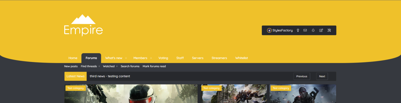 With EMPIRE theme you can make your forum look modern and elegant. This theme was prepared with 5 additional presets. Thanks to them you can change look of your forum in just few seconds.