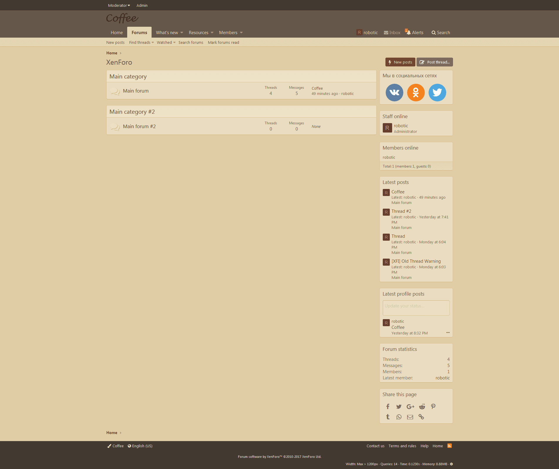无名 提交新资源: XF2 Style Coffee - XF2 Style Coffee 浏览附件2977 This is a coffee themed responsive XenForo style with non-standard navigation that uses modern technologies. 点击展开... 阅读关于此资源更多信息...