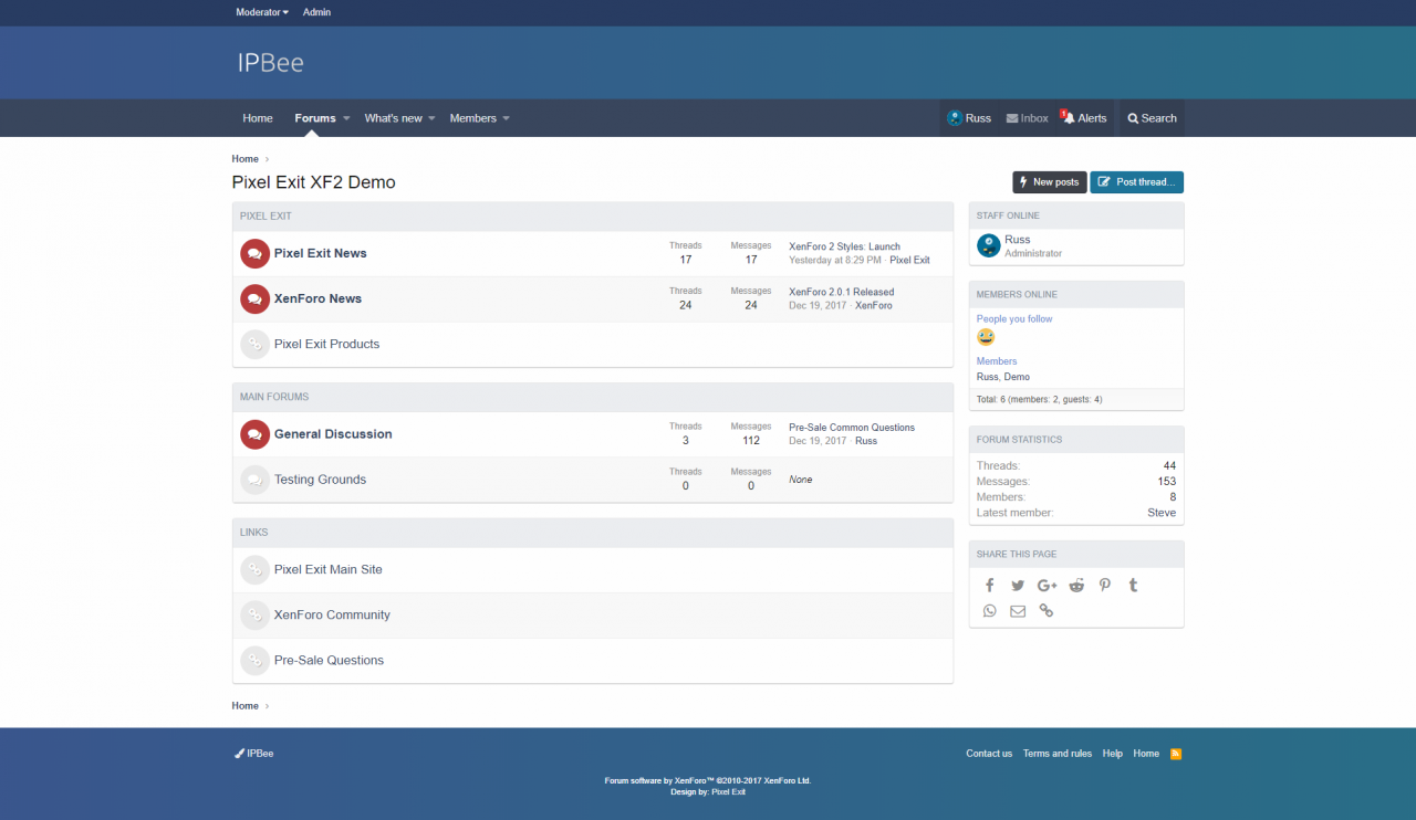 IPBee was a fun little project we built early on just to test out the style system. This is NOT powered by our framework so it does not have any additional options we mentioned in our premium styles. This is a basic reskin of the default XenForo style.